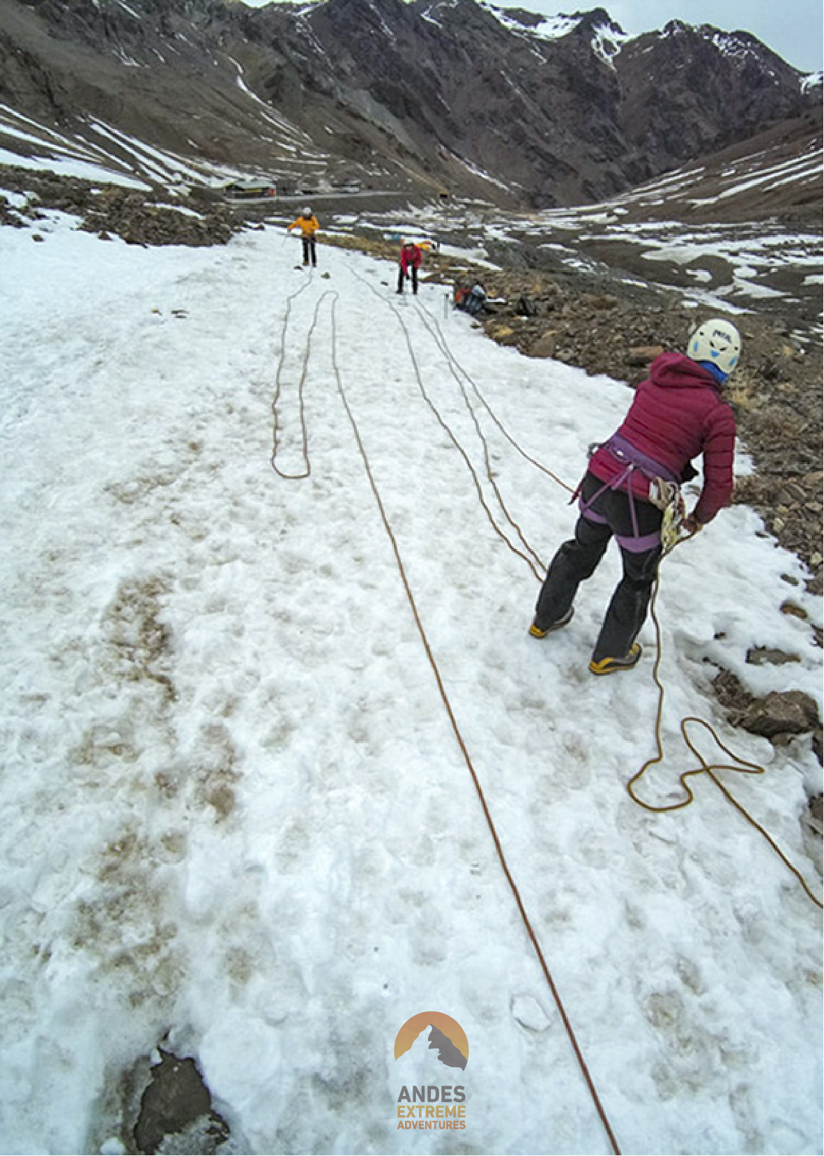 Este curso está destinado a participantes que ya tienen experiencia en montañismo y necesitan adquirir o mejorar sus técnicas de seguridad. Además el curso incluye contenidos de tránsito en glaciar y terrenos nevado tanto con botas, como con crampones y raquetas. También incluye técnicas de seguridad, rescate en grietas, todas técnicas necesarias y fundamentales para la práctica del montañismo sobre terrenos helados.